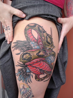 here are a number of celebrities with tattoos; Jeff Corwin not surprisingly has a coral snake on his upper left shoulder. Actress Sheryl Lee is also reported to have a snake tattoo but it is in an undisclosed location. Alyssa Milano has an Ouroboros tattoo.